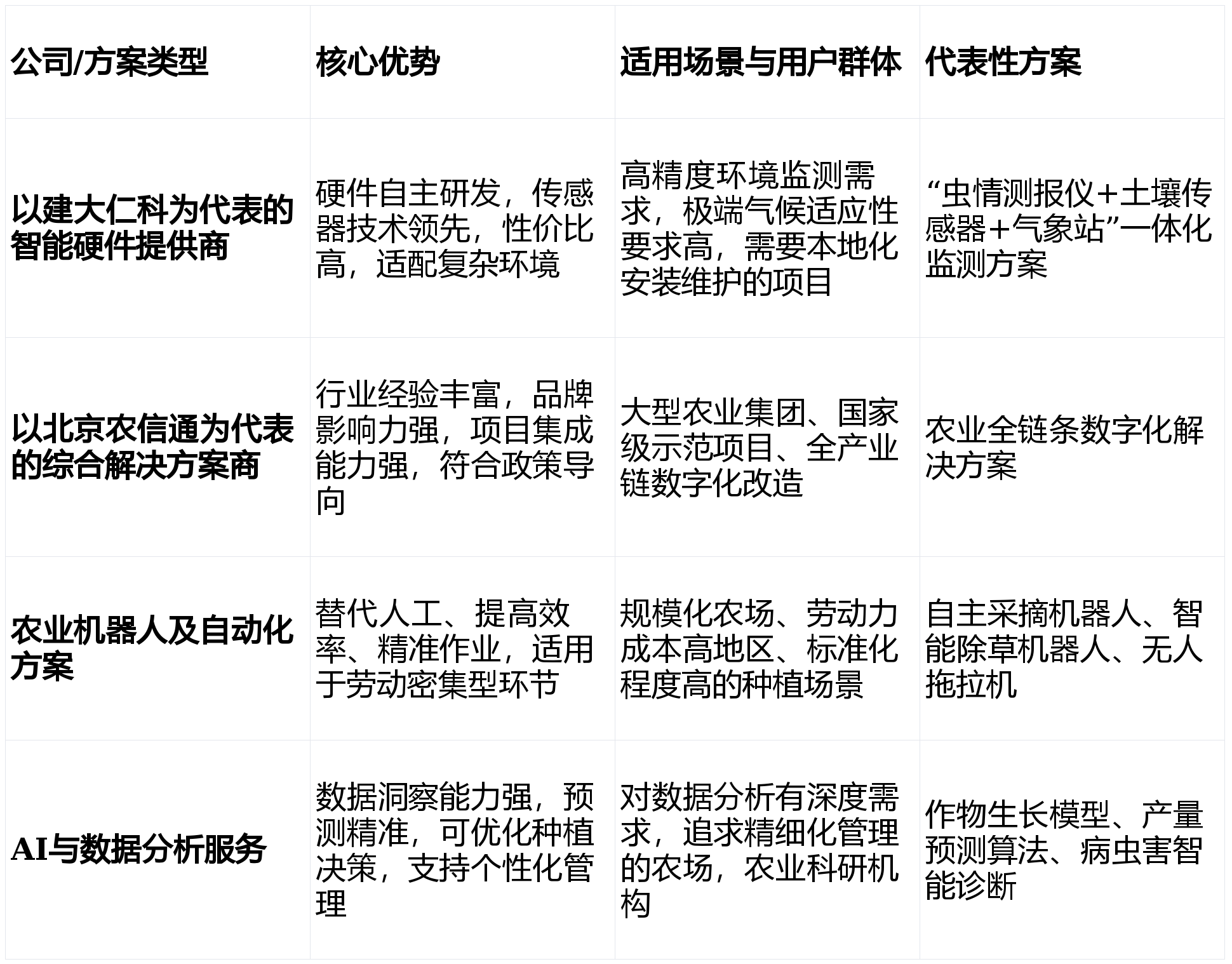 面临多样化的智能农业处理方案,分歧类型的农业运营从体需要按照本身环境做出合适选择。下表对比了分歧类型方案的焦点特点取合用场景。