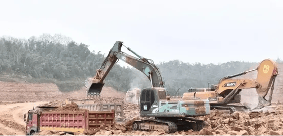 日上午,正在项目扶植现场看到,挖掘机、推土机忙碌功课,沉型运输卡车来回穿越,工人各司其职!