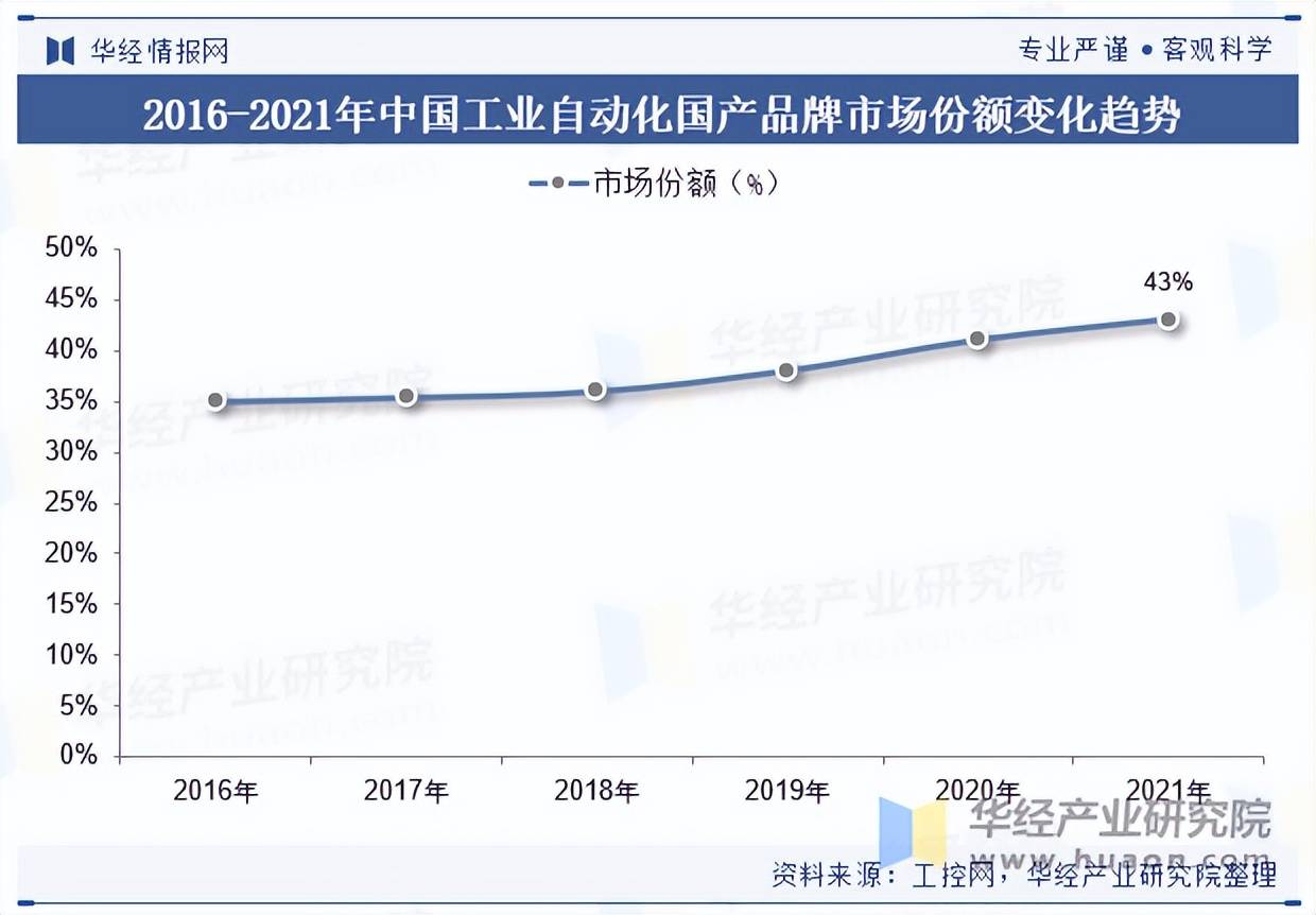工业从动化节制产物手艺含量较高、专业性较强,我国工业从动化行业起步较晚,正在全球合作中临时处于劣势。取制制业成长示状比拟,我国工业从动化成长程度较低,行业仍存正在较大成长空间。2021年我国工业从动化国产物牌市场份额达43%,将来还将进一步提拔。