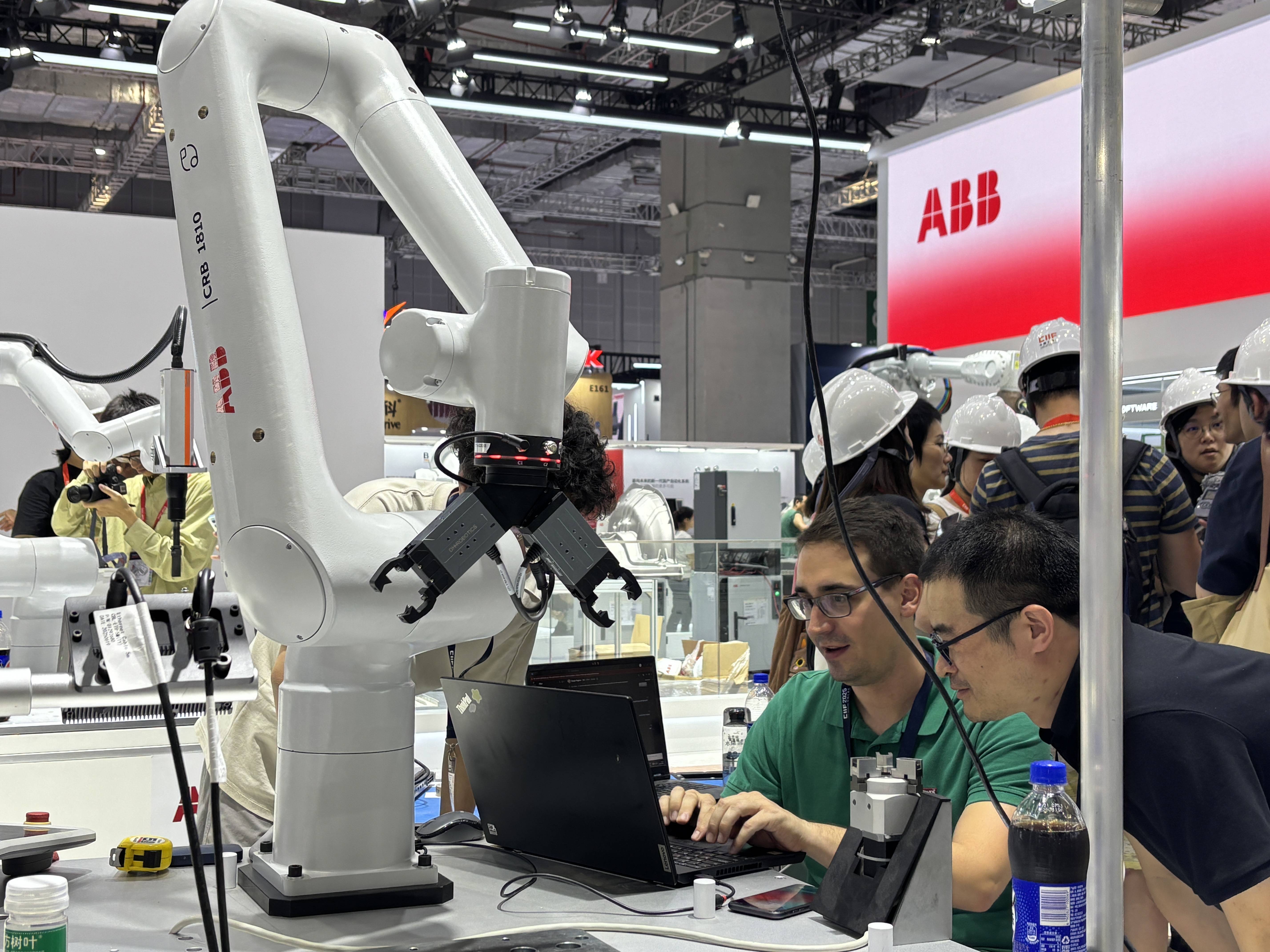 ABB还将于本届工博会首发OmniCore™️EyeMotion视觉系统。据工做人员引见,该产物是一款旨正在提拔机械人视觉集成效率的软件平台,可搭载于多种机械人型号,可以或许快速兼容市道上分歧品牌、分歧型号的视觉摄像头,实现“即插即用”。